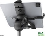 Mikrofonitelineeseen kiinnitettävä pidike tablettitietokoneille. Valmistettu ympäristöystävällisestä biohajoavasta muovista