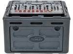 Tuotenumero 1801154SKB-R104, mikseri ja efekti / vahvistin räkki. 10U tilaa päällä mikserille / soittimille ja 4U tilaa edessä päätteelle / efekteille.