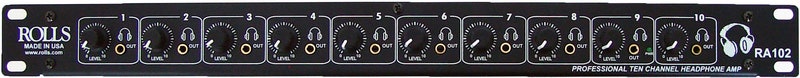RA102 on kymmenen kanavainen kuulokevahvistin joka voidaan laajentaa tarpeen mukaan niin laajaksi kuin sielu sietää. 1/4" (6,3mm) stereo ulostulot laitteen takaseinässä ja etuseinässä 1/8" (3,5mm) stereo ulostulot etuseinässä äänenvoimakkuus säätimien vieressä. Korkeus 1RU.
