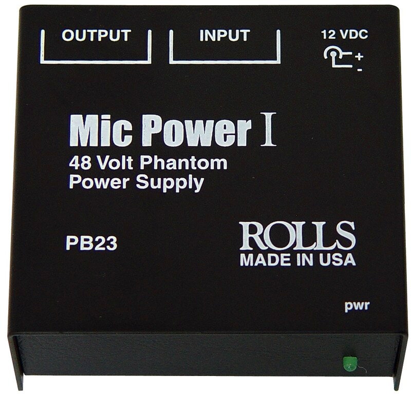 PB23, 1-kanavainen mikrofonivirtalähde (12V tai 48V), tuottaa ehdottoman puhtaan DC-phantom-jännitteen.