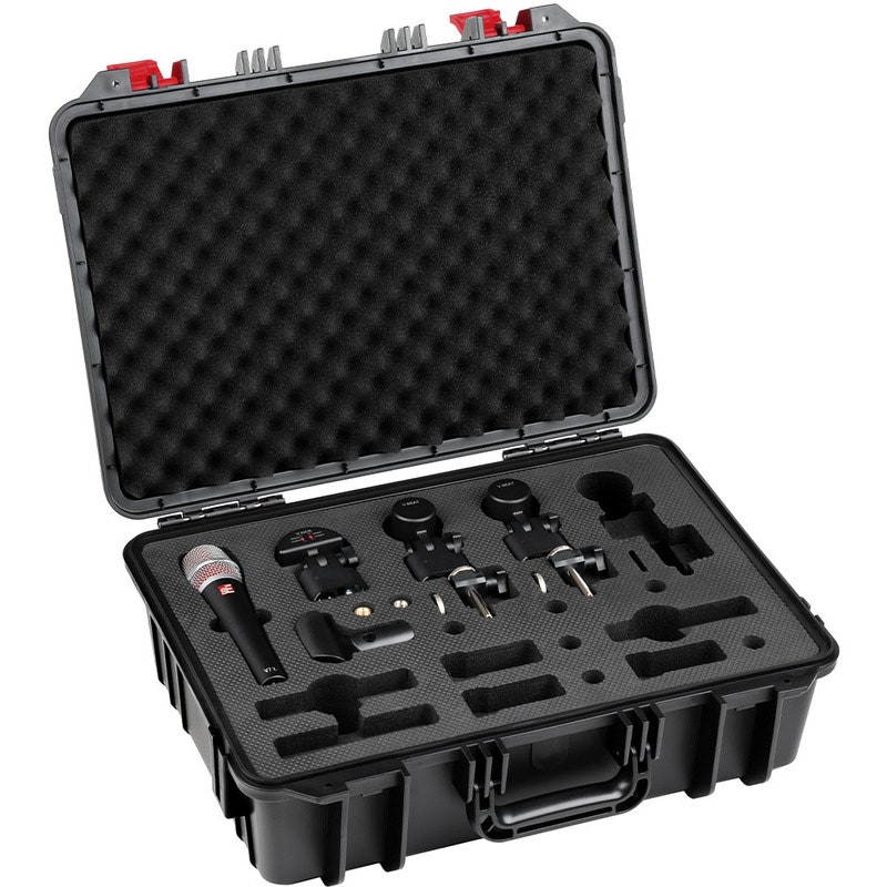 Tuotenumero 1315795V PACK Venue pitää sisällään neljä palkittua sE Electronics rumpumikrofonia, pidikkeet sekä kuljetuslaukun. V PACK Venye-setillä loihdit upean soundin rumpusetillesi