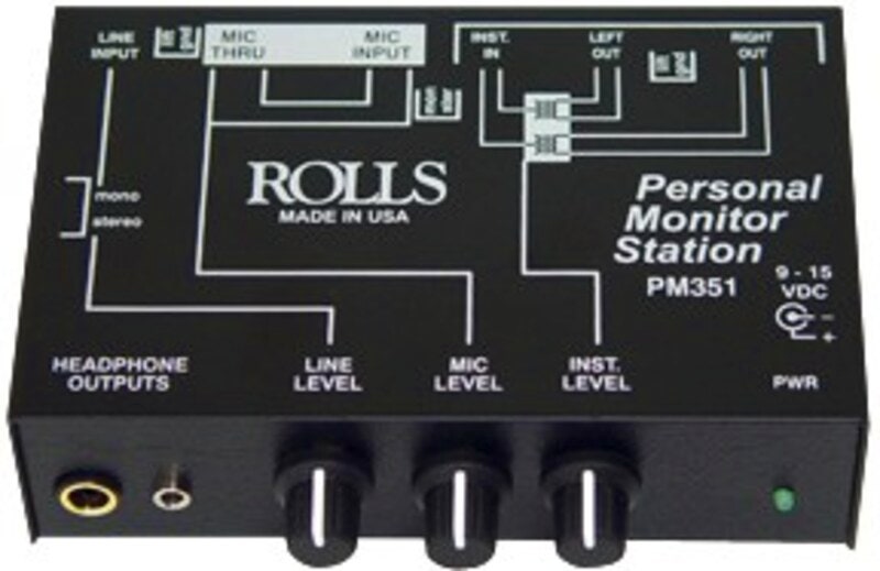 Personal Monitor Mixer antaa käyttäjälleen mahdollisuuden miksata stereo/mono linjasignaalin, mikrofonin ja stereo/mono instrumenttisignaalin yhteen omaksi kuuntelumiksaukseksi. Kytke mikrofonisi ja/tai syntikkasi suoraan PM350:en, sitten edelleen mic/instrument-signaalit thru- sekä out-lähdöistä mikseriin. Sen jälkeen monitoritulo mikseriltä PM350:en. Tällä tavoin voit kontrolloda omaa kuunteluasi säätämällä Mic/ Instrument/ Line tuloja.