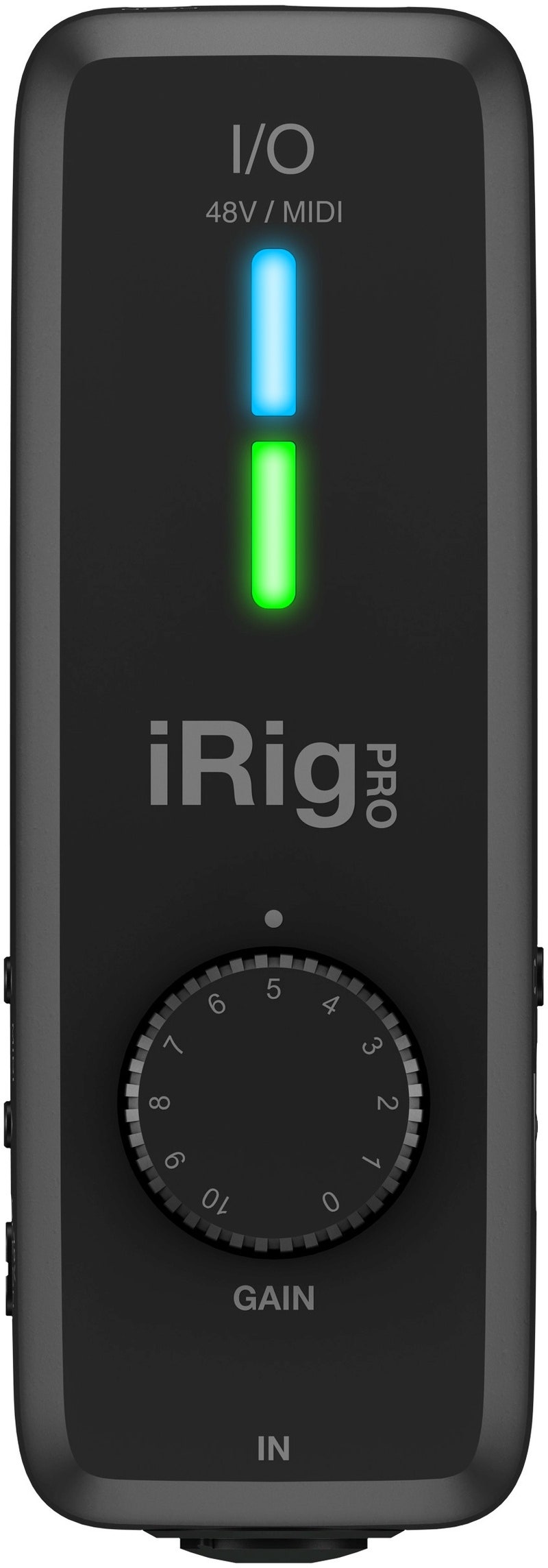 Audioliitäntöjen lisäksi siitä löytyy MIDI-I/O, ja tasosäädöllä varustettu kuulokelähtö tekee siitä myös iPhone 7 -yhteensopivan. Erikseen myytävä virtalähde syöttää virtaa iRig Pro I/O:lle, ja huolehtii samalla myös mobiililaitteesi latauksesta.