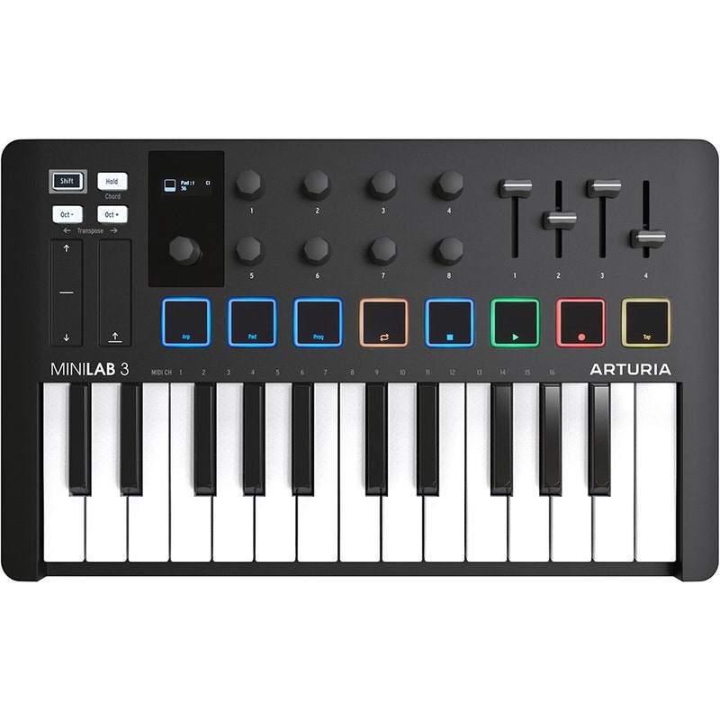 MiniLab 3 on uuden sukupolven plug-and-play MIDI kontrolleri, jossa yhdistyy mainio kiipparitatsi, töpäkät padit, jämptit liu’ut ja nupit unohtamatta mainiota softabundlea saumattomalla DAW integraatiolla.