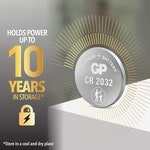 Tehokkaat GP-litiumkolikkoparistot CR2032 ovat energiatiheitä ja voivat tuottaa 30 % enemmän tehoa* pienikokoisille erikoislaitteillesi, mukaan lukien auton avaimet, kaukosäätimet, älykellot, verensokerimittarit, kodin älylaitteet, IoT-laitteet, ovi- ja ikkunaanturit. Tehty toimimaan jopa äärimmäisissä olosuhteissa, se toimii luotettavasti jopa -20°C - +60°C.