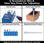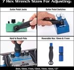 Vie huoltosi uudelle tasolle Pedal Hex Wrench & Screwdriver -sarjamme avulla. Tämä sarja on suunniteltu ja valmistettu sisältämään seitsemän yleisintä kitaraefektipedaalien kuusiokoloavaimen kokoa: 8 mm, 10 mm, 11 mm, 12 mm, 14 mm, 15 mm ja 1/2”, joita tarvitaan jakki-, potentiometri- ja kytkinmuttereiden säätämiseen sekä vintage- että moderneissa pedaaleissa. Käännettävä sininen kuusiokoloavain sisältää sekä 10 mm että 11 mm koot. Yleisimmät efektipedaaleihin tarvittavat ruuvimeisselipäät ovat: ristipää (#1, #2), talttapää 2,5 mm sekä kuusiokoloavaimet (1/16”, 1,5 mm, 2 mm) pieniin säätönuppiruuveihin ja muihin pedaalin avausruuveihin. Kaikkien näiden työkalujen avulla tämä on täydellinen setti pedaalien rakentamiseen ja kokoamiseen.