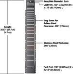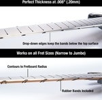Ei ole mitään parempaa kuin mielenrauha samalla kun säästät aikaa ja rahaa. MusicNomadin patenttihakemuksessa oleva Fret Shield asettaa uuden, korkeamman standardin täydelliselle otelaudan suojaukselle nauhatyöskentelyn aikana, kuten kiillottamisessa, tasoittamisessa ja kruunauksessa. Sano "EI" siniselle teipille uudelleenkäytettävällä suunnittelullamme, joka menee paikoilleen sekunneissa, suojaa täydellisesti vahingoittamatta otelautaa ja kestää satoja nauhatöitä. Korkealaatuinen ruostumaton teräs on täydellisellä paksuudella (.008" / .20mm), valmistettu tarkkuusprosessilla ja kaikki reunat ovat sileitä ja pyöreitä. Innovatiivisesti muotoillut reunat mahdollistavat sisällytettyjen kumilenkkien pitävän Fret Shieldin paikoillaan turvallisesti ja pitävät nauhat pinnan alla estäen niiden vahingoittumisen kiillotusprosessin aikana. Fret Shieldsit tulevat suosituimmissa skaalakoissa ja sisältävät kätevän ripustusholkin. Olipa otelautasi viimeistelty vaahtera tai viimeistelemätön ruusupuu otelautamerkeillä, otelautasi kiittää sinua sen suojaamisesta. Se on MusicNomad-laatua – nostaa rimaa välineiden huollossa.