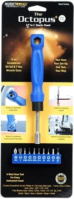 Unohda ruuvimeisselien, mutteriavainten, lenkkiavainten ja kuusiokoloavainten kantaminen tai useiden vaihtopäiden säilyttäminen tilaa vievissä koteloissa. The Octopus 17 'n 1 Tech Tool hoitaa kaikki työt! MusicNomadin patentoitu, innovatiivinen muotoilu on täydellinen työkalu ruuvien ja kuusioruuvien kiristämiseen tai löysäämiseen tärkeissä laitekomponenteissa, kuten talloissa, satuloissa, lukkomuttereissa, jakeissa, potentiometreissä, virityskoneistojen holkeissa ja muissa. Sano siis ei metallisille työkaluille! Ergonominen kahva on valmistettu vahvasta ballistisesta nailonista, joka ei naarmuta tai kolhi laitteistoasi.