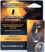 Voit vihdoin päästää irti! MusicNomadin patenttihakemuksessa oleva Acousti-Lok on hihnan lukitusadapteri, joka lisää hihnan lukkojen turvallisuuden ja joustavuuden TAYLOR® akustiseen kitarasi ilman, että se vaatii pysyvää muokkausta. Suunniteltu käytettäväksi SCHALLER®-tyylin hihnanlukkojen (ei sisälly) kanssa, Acousti-Lokin vahva massiivinen messinkinen rakenne antaa sinulle etsimäsi turvallisuuden. Erilaisia Acousti-Lok-malleja on saatavilla, joten varmista, että löydät sen, joka on yhteensopiva akustisen kitarasi lähtöliitinaukkoon. Tämä ei sovi TAYLOR® kitaran alkuperäiselle AA-paristokäyttöiselle EXPRESSION SYSTEM®:lle.