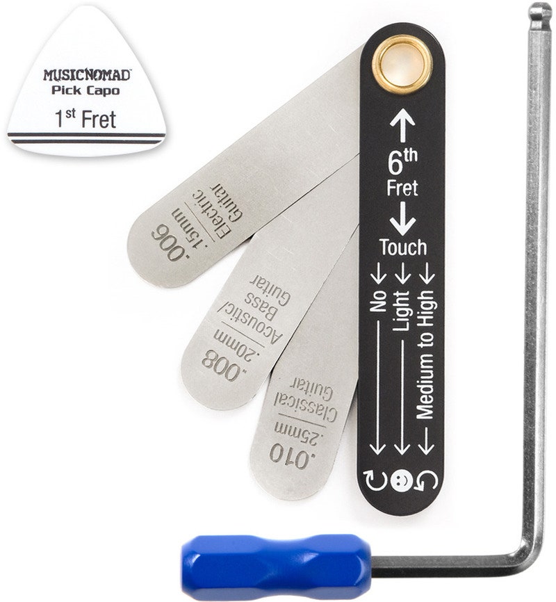 Pidä mitta aina käden ulottuvilla, sillä se toimii minkä tahansa kitaran tai basson kanssa, ja 5 mm väännin sopii myös muihin kitaramerkkeihin, jotka käyttävät tätä kokoa. Tutustu myös kaikkiin MusicNomadin tarkkuusmittareihin ja työkaluihin, joita käytetään säätöprosessissa. Tämä on MusicNomad-laatua – asettamassa uuden tason soitinten huollossa.
