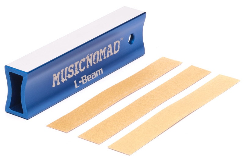 Nauhojen ja otelaudan tasoittaminen ei ole koskaan ollut helpompaa MusicNomadin Fret Leveler L-Beamin avulla. Kolme eri kokoa valittavana: 7" (18 cm) ukulele/mandoliiniin, 17,6" (45 cm) sähkö- ja akustisiin kitaroihin, ja 24" (61 cm) sähköbassoihin, eikä yksityiskohtia ole unohdettu luotaessa uutta korkeampaa standardia. Meidän vertaansa vailla oleva paksumpi seinämäsuunnittelu antaa tasoittimen painon tehdä työn puolestasi. Eksklusiivinen ergonominen kaareva kahvasuunnittelu tarjoaa sinulle maksimaalisen mukavuuden ja hallinnan, ja estää myös liukumista käsistäsi. Meidän sädeviistetyt reunat estävät nauhan kolhimisen ja vaurioitumisen. Tärkeintä on, että tasoittimen ylä- ja alareunat käyvät läpi kolmen vaiheen tarkkuushiontaprosessin, jonka tarkkuus on +/-.00125" per jalka. Sisällytämme myös kätevän ripustusholkin ja kolme 3M™ Stikit™ Gold Abrasiiviteippiä, jotka ovat huipputason korjaamoiden suosikkivalinta: (2) P240 karkeus, (1) P400 karkeus. Se on MusicNomad-laatua – nostaa rimaa välineiden huollossa.
