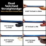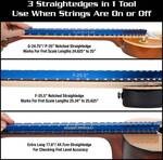 MusicNomadin patentin alaisella Tri-Beam Dual Notched ja Precision Straight Edge -viivaimella nauhojen ja otelaudan tasaisuuden diagnosointi ei ole koskaan ollut helpompaa. Ainutlaatuinen kolmiorakenne sisältää kaksi loveettua suoraviivainta, jotka on suunniteltu kattamaan laajempi valikoima mensuurimittoja: 24.625"–25" ja 25.34"–25.625", jotta voit mitata otelaudan tasaisuuden ja kaulan kaarevuuden. Kääntämällä viivaimen kolmannelle sivulle voit käyttää 17.6" (44.7 cm) "lovetonta" suoraviivainta tarkistaaksesi nauhojen tasaisuuden. Korkealaatuisen alumiinin ja huipputarkan valmistustekniikan ansiosta viivain säilyttää suoruutensa koko pituudeltaan sekä sisältää erittäin kiillotetut, sileät ja tasaiset reunat. Mukana on myös kätevä ripustusreikä. Tämä on MusicNomad-laatua – nostamassa rimaa soitinhuollossa.