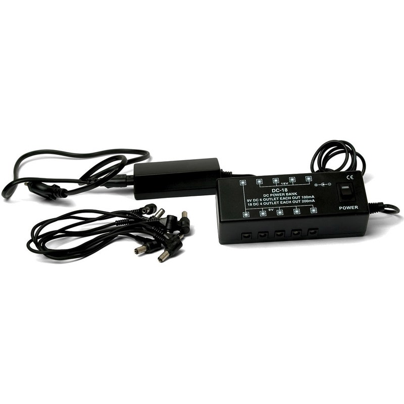 Kätevä virtalähde, josta saat jaettua virtaa jopa kymmenelle efektipedaalille. Virtalähteessä 10 x 9V DC (100mA) ulostuloa.