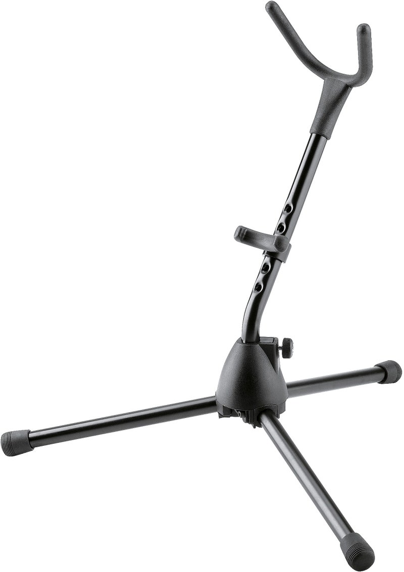 Säädettävä ja kokoon taittuva teline Es-vireiselle alttosaksofonille ja B-vireiselle tenorisaksofonille. Joustava telineen tukivarsi sopii erikokoisille saksofonin kelloille. Alemmassa tukivarressa on useita pystysuuntaisia lukitusasentoja. Kaikki soittimen tukiosat on päällystetty naarmuttamattomalla muovipinnoitteella, joka suojaa soittimesi pintaa.