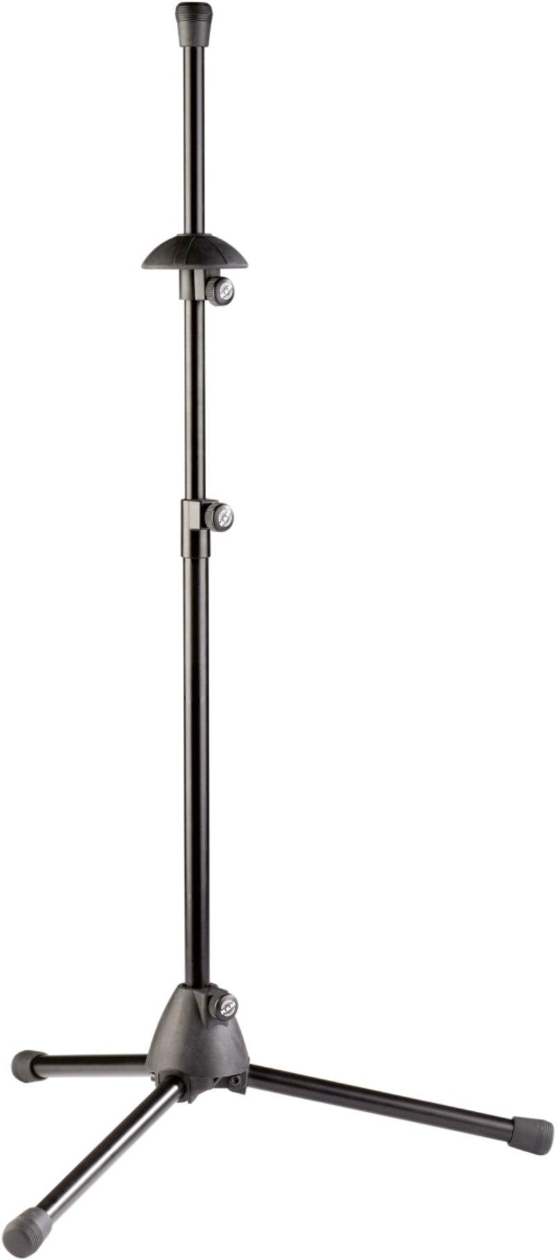 Kestävä, tukeva ja helposti kokoontaittuva kolmejalkainen pasuunan teline. Telineen korkeuden säätäminen on vaivatonta ja myös soittimen tuen paikkaa voidaan muuttaa telineessä.