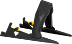 Tyylikäs ja virtaviivainen teline sähköisille ja akustisille soittimille. Kokoontaitettuna todella litteä, joten se sopii helposti soitinlaukun etutaskuun. Kumiset kontaktit suojaavat soitintasi säilytyksen aikana.