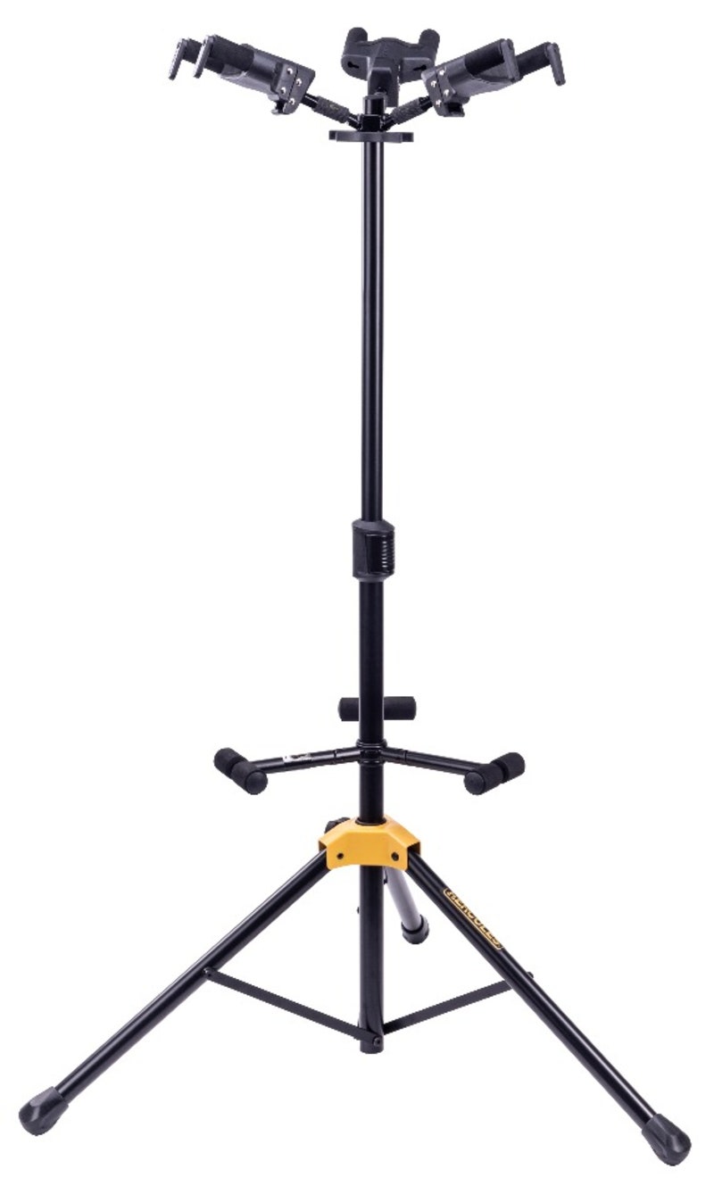 HERCULES GS423B PLUS on päivitetty versio alan standardiksi muodostuneesta kolmen kitaran Auto Grip-telineestä. Sopii lähes kaikille kitaroille ja bassoille rungon muodosta riippumatta. HERCULES GS423B PLUS on teline, jossa soittimesi runko on kosketuksissa pehmeään vaahtomuovipehmusteeseen kaikissa kosketuskohdissa.