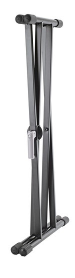 Tyylikäs, kevyt ja erittäin tukeva alumiinirunkoinen X-teline kosketinsoittimille. Ergonominen kiristysvipu helpottaa oikean soittokorkeuden löytämisessä ja telineen kasaamisessa. Voit säätää korkeutta tiheän viiden asteen välein tukevalla hammasrattaalla ja saat valittua aina mukavan soittoasennon. Neljä kiinteää kumista suojaa ja 350mm syvyys tekevät tästä telineestä ihanteellisen kaikille keikkapianoille.