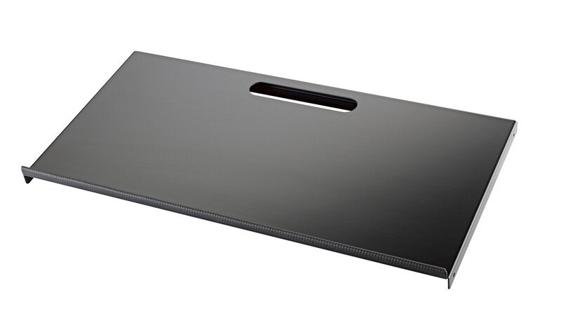 18819 on tukeva alumiininen alusta, jolla saat Omega-telineeseen lisätason pienemmille koskettimistoille, kontrollereille tai rumpukoneille. Kallistuksen rajoitin kumisilla reunoilla ja kumisilla tasoilla estävät pienempien soittimien liikkumisen kesken käytön.