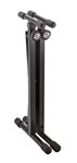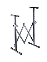 Käytännöllinen ja monikäyttöinen laiteteline, joka kantaa vakaasti mikserti, monitorit, kosketinsoittimet tai vahvistimet. Telineen kokoaminen on helppoa eikä vaadi erillisiä työkaluja. Jokaisen tukivarren korkeus voidaan säätää erikseen välillä 595mm ja 1015mm käyttäjäystävällisen kiristinmekanismin avulla. Etupuolen kumipäät ovat säädettävissä akselinsa suhteen ja voidaan säätää täten täydellisesti laitteesi leveyteen sopivaksi.
