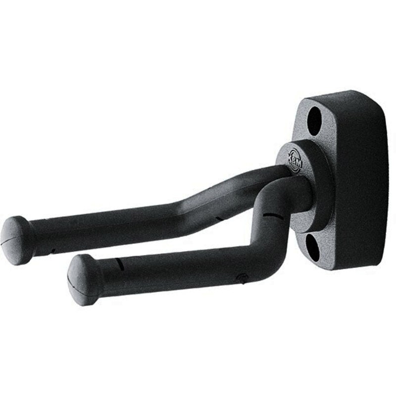 Tyylikäs seinäteline erilaisille kielisoittimille. Instrumenttihaarukan pidikkeet muotoutuvat yhteensopiviksi erilaisten kaulanprofiilien kanssa ja ne ovat päällystetty naarmuuntumattomalla kumilla, joka suojaa soittimesi kaulaa. Teline kiinnittyy seinään kahdella ruuvilla.