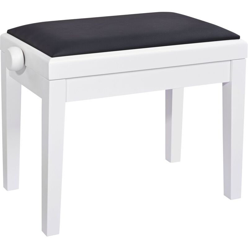 Tämä klassinen pianopenkki on valmistettu massiivipuusta, viimeistelty mattavalkoiseksi ja tuolin istuinosa on verhoiltu mustalla keinonahkalla. Korkealaatuisista materiaaleista ja nykyaikaisella tekniikalla valmistetun penkin korkeutta voidaan säätää helposti, jotta soittajalle saadaan ihanteellinen istuma-asento.