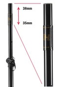 Kaksi tukevaa alumiinitelinettä patentoidulla Smart Adaptorilla, joka mukautuu ilman erillisiä irtoavia osia sekä 35mm että 38mm kiinnikkeisiin ilman irtoavia osia. Tukevat ja silti helppokäyttöiset kiertuekäyttöön suunnitellut telineet, joiden mukana toimitetaan kuljetuslaukku.