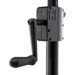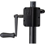 - Gear Up korkeudensäätömekanismi: Painevaletut sinkkiosat takaavat telineen kestävyyden. Taitettava käsikampi mukautuu telineen rungon mukaan kuljetuksen ajaksi ja se kestää hyvin iskuja
