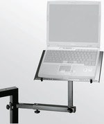 Tämän Omega 18810-, 18950- ja 18953-kosketinsoitintelineille suunnitellun telineen avulla saat kannettavan tietokoneesi lähelle ja käsiesi ulottuville vaivattomasti. Tätä monipuolisempaa kannettavan tietokoneen pidikettä et taatusti löydä. Voit kallistaa tasoa kahdeksan eri säätöportaan avulla ja voit kiinnittää lisäosan mihin tahansa neliön muotoiseen putkeen (mitat n. 40mm x 40mm). Säädettävien pysäytystappien ansiosta kannettavan tietokoneen liitännät ovat aina helposti saatavilla. Tukihylly soveltuu myös pienille laitteille, kuten iPadille ja rumpukoneille.