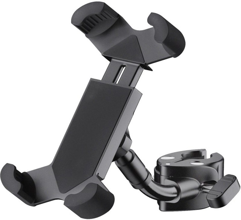 Tuotenumero 25519755Telineen varteen kiinnitettävä pidike älypuhelimille tai muille litteille laitteille, joiden halkaisija on 55-85 mm