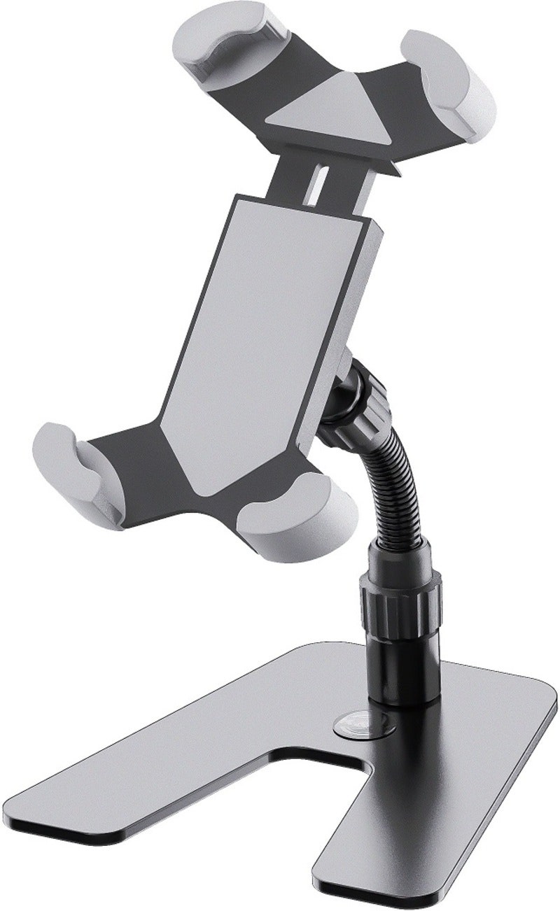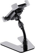 100mm pitkä joutsenkaula tarjoaa lisää mahdollisuuksia laitteesi sijoittamiseen ja tyylikäs metallipohja luistamattomilla kumityynyillä pitää telineen tukevasti paikallaan.