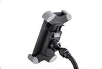 Tämän kätevän telineen avulla älypuhelimesi on aina käsiesi ulottuvilla. Teline on yhteensopiva kaikkien älypuhelimien ja litteiden laitteiden kanssa, joiden leveys on 55mm-85 mm. Telineen käyttäminen on äärimmäisen helppoa. Takana oleva pikalukituspainike lukitusmekanismilla avaa kumiset puristimet ja telineessä oleva laite voidaan helposti irrottaa. Joustavan pallonivelen ansiosta pidikettä voidaan kallistaa ylös ja alas sekä kääntää 360°.