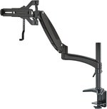 Päällekkäiset kiinnitysleuat integroiduilla kumityynyillä varmistavat turvallisen pidon ja poistavat ei-toivotut tärinä-äänet. Säädettävä kiinnitysosa huopapehmusteella lisää turvallisuutta, kun tabletin pidike on pystysuorassa asennossa ja estää tablettia putoamasta kovassakin menossa. Kätevä siipimutteri mahdollistaa kulman säätämisen, jotta jokainen käyttäjä voi helposti löytää itselleen ihanteellisen katselukulman. Vakaan puristinkiinnittimen ansiosta teline voidaan kiinnittää jopa 60mm paksuun tasaiseen pintaan. Näyttöä voidaan kallistaa, kääntää ja pyörittää äärettömästi, mikä takaa täydellisen katselumukavuuden ja parantaa työasentoa. Integroitu kaapelinhallinta varmistaa siistin ja ammattimaisen työtilan.