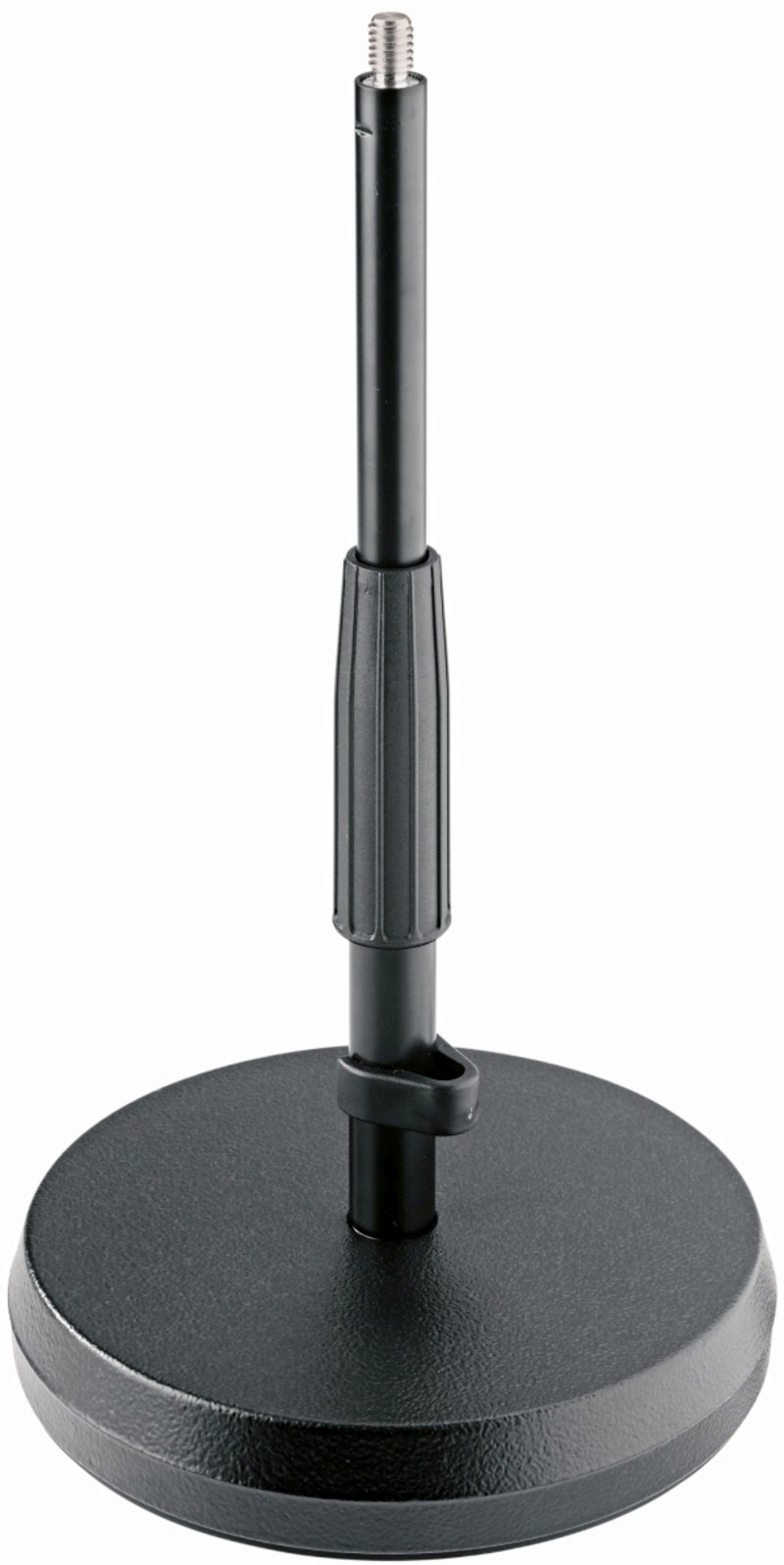 Matala mikrofoniteline, jonka teräksisessä jalustakiekossa on tehokas tärinänvaimennus. Sopii käytettäväksi pöytätasoilla tai lattialla.