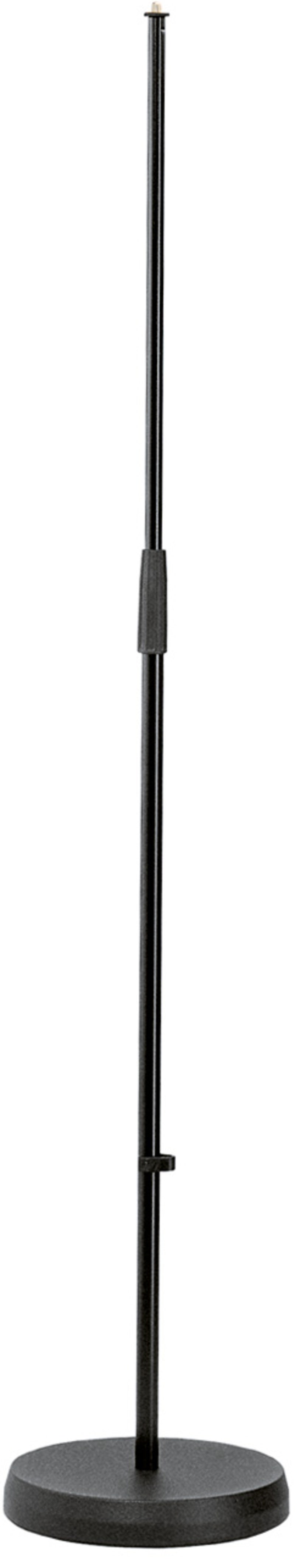 Klassinen mikrofoniteline, jonka valuraitaisessa jalustakiekossa on tehokas tärinänvaimennus.