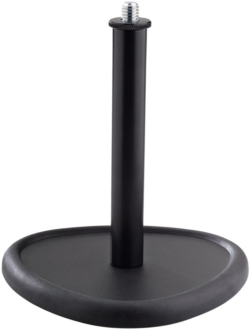 Tuotenumero 25523230Pyöreä pöytäjalusta mikrofonille, jonka pohjassa on tärinää vaimentava kumireunus