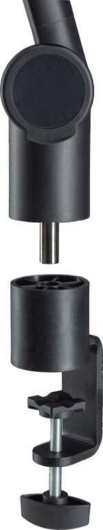 Tyylikäs ja elegantti mikrofoniteline, joka on varustettu 3/8"- tai 5/8" telinekierteellä. Innovatiivisen pöytäkiinnikkeen avulla sijoitat mikrofonisi täydellisesti ulottuvillesi myös pienemmissä äänitysstudioissa. Pöytäkiinnikkeessä on kiinnitysleuka, jonka puristusalue on 3mm-50mm. Mikrofonien lisäksi teline soveltuu älypuhelimille ja tableteille, joiden paino on maksimissaan 1Kg. Toimitukseen sisältyy myös laippa, joka mahdollistaa kiinteän asennuksen pöytätasoon.