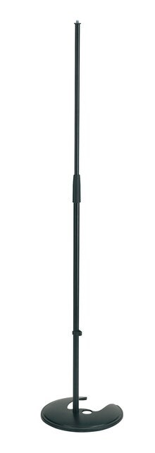 Suora mikrofoniteline. jonka tukevassa jalustakiekossa on tehokas tärinänvaimennus