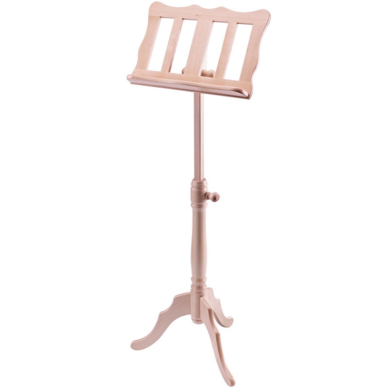 Upea massiivipyökistä valmistettu nuottiteline kaarevalla barokkityylisellä muotoilulla.
