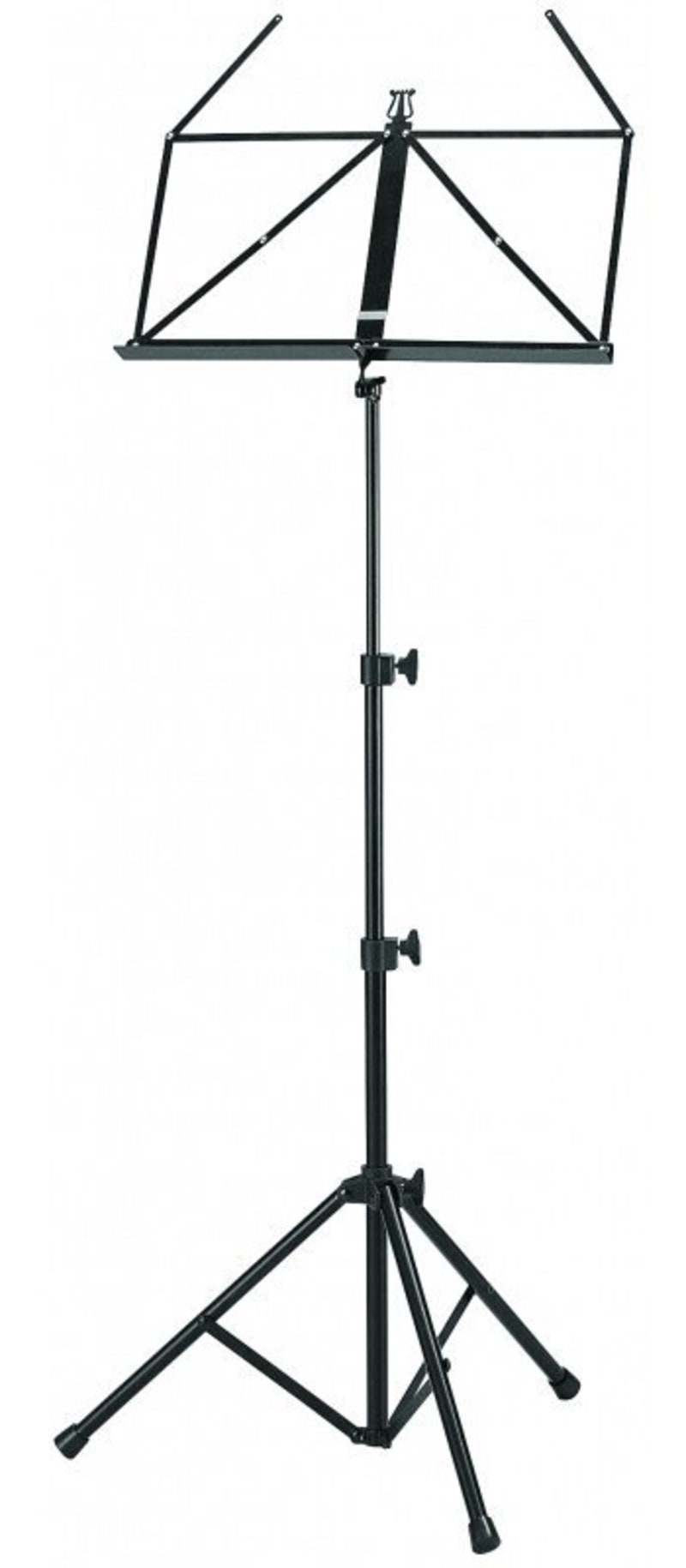 NBS-1305 on perinteinen kokoontaitettava nuottiteline portaattomalla korkeudensäädöllä ja jopa 90° taittuvalla nuottitasolla. Hintaan sisältyy kuljetuspussi.