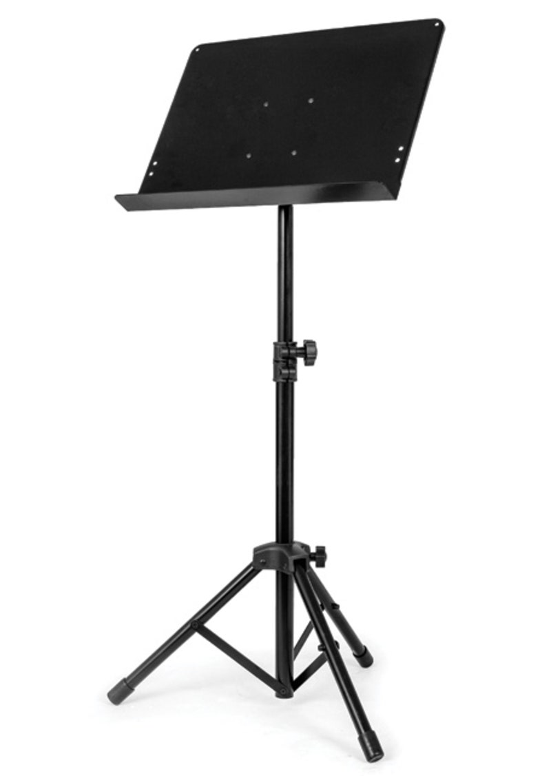 Vankka orkesterinuottiteline, jossa on 360° kääntyvä- ja aina 90° kulmaan asti taittuva nuottitaso. Telineen teleskooppijalusta on kokoontaitettava ja nuottitaso voidaan irrottaa telineestä kuljetuksen ajaksi.
