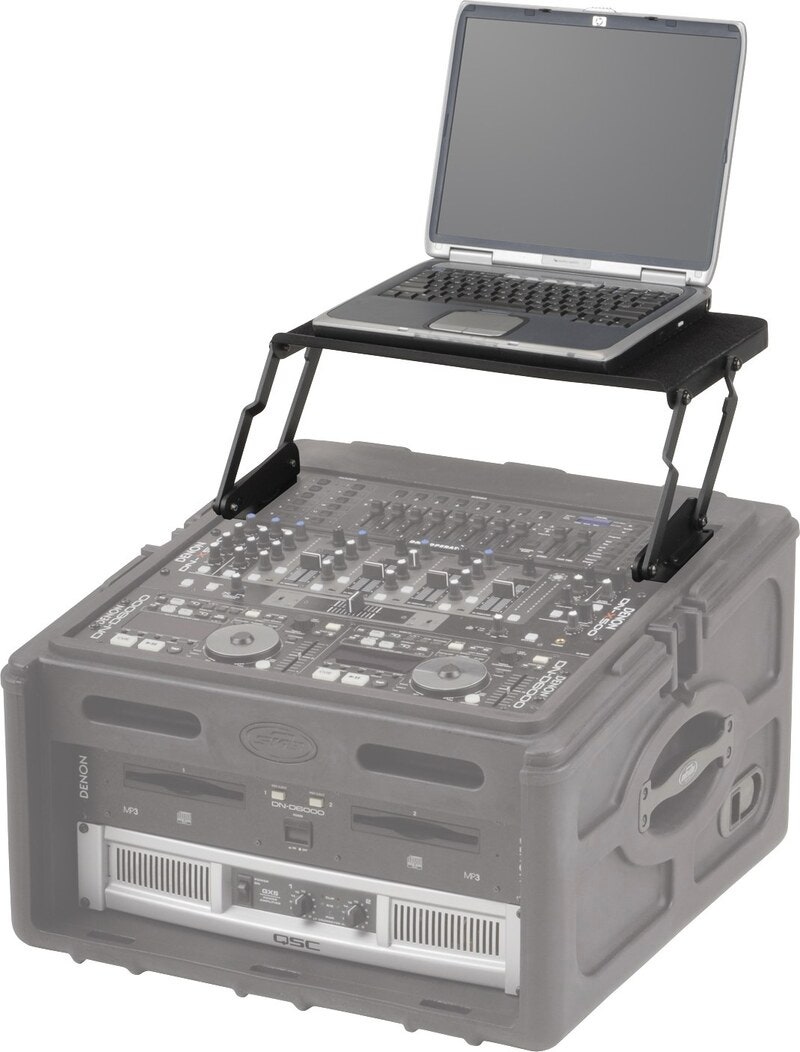 Tuotenumero 1808938SKB-AV8, hylly esim. kannettaville tietokoneille. Asennetaan räkkehiin, joissa yläpuolista tilaa vähintään 8U. Sopii esim. SKB-82DJ, SKB-84DJ ja SKB -106DJ -koteloihin