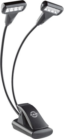 Kompakti nuottivalaisin, jossa on tehokkaat kahden ledin valaisimet kahden joutsenkaulavarren päässä